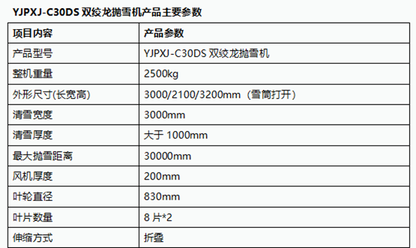 YJPXJ-C30DS自带动力双绞龙重型抛雪机
